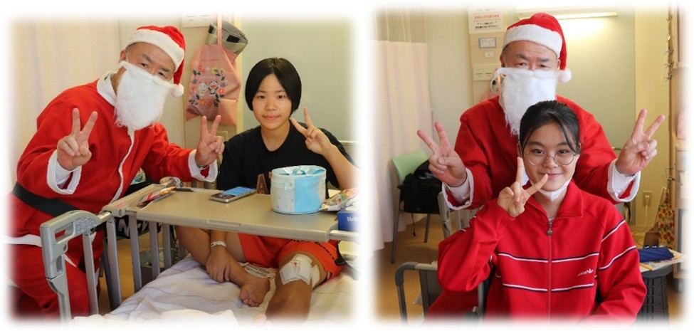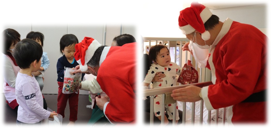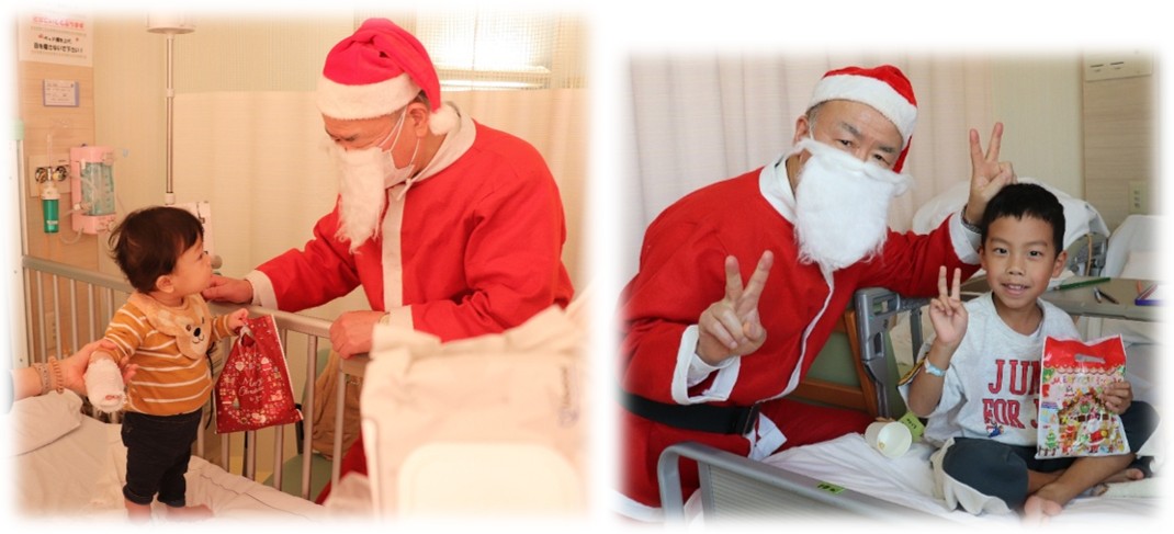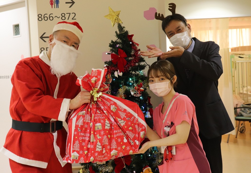 2025年12月19日(金)院長サンタが「院内保育所」「小児科病棟」を訪問し、子供たちにクリスマスプレゼントを手渡しました。