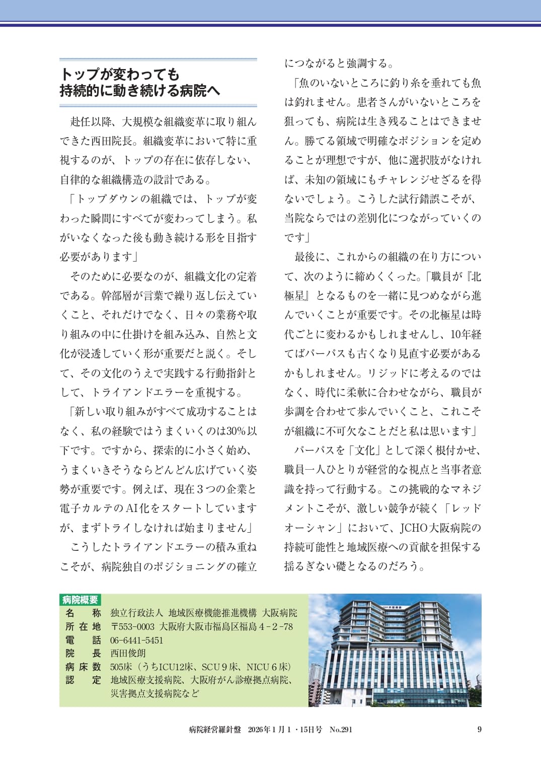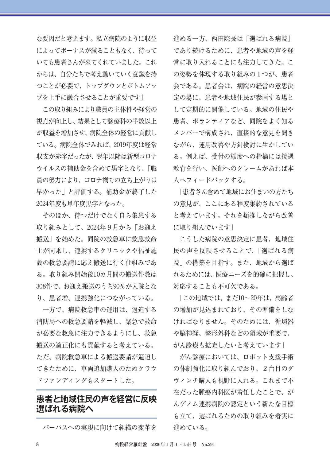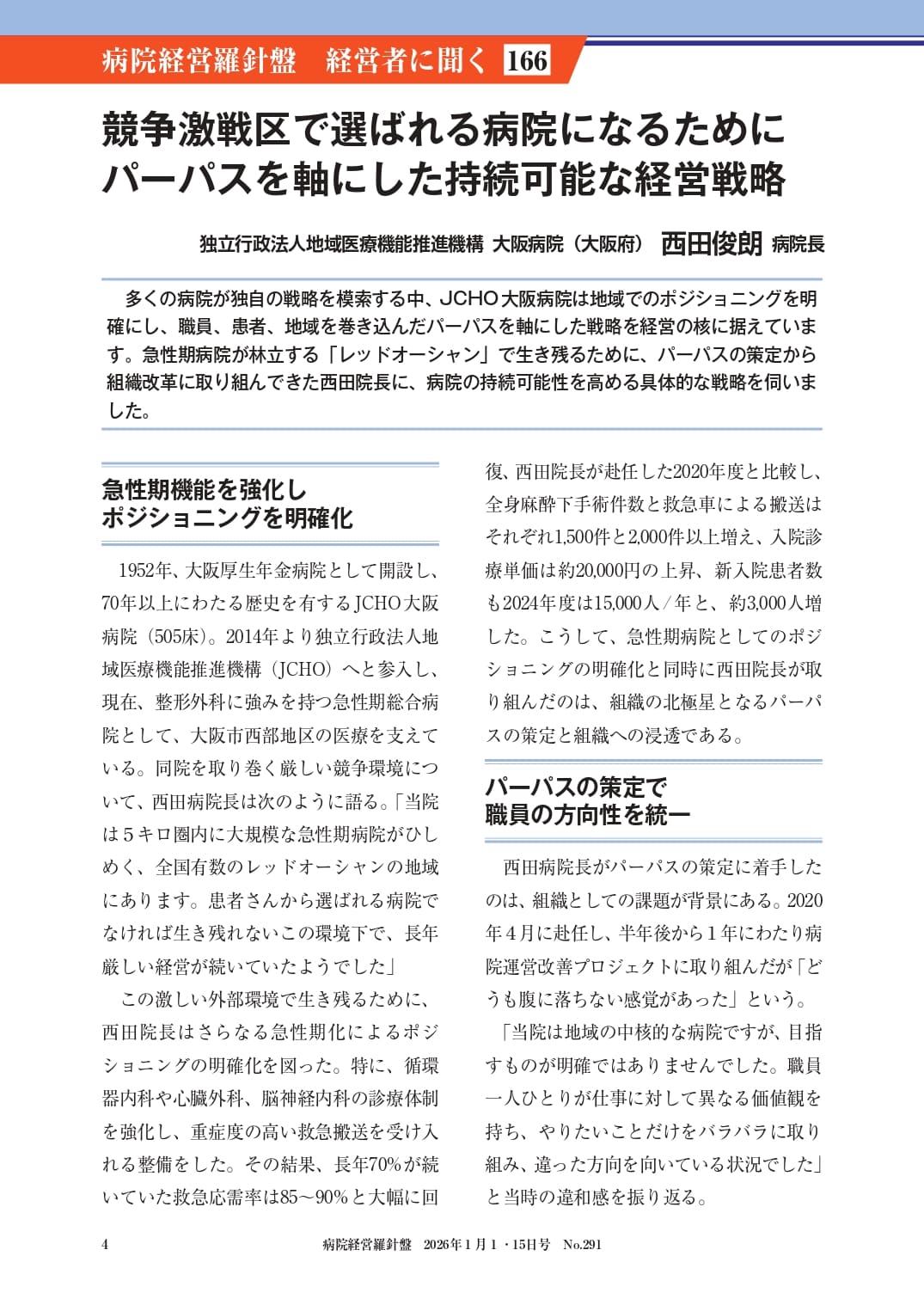 『病院経営羅針盤2026年1月合併号』より取材いただきました。