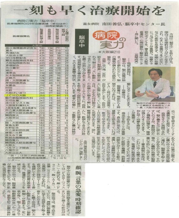 読売新聞の病院の実力「脳卒中」に2024年の治療実績として当院が掲載されました。