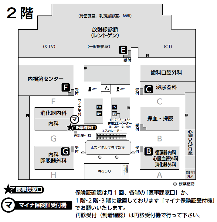 ・1階の再診受付機設置場所が「総合案内」横に変更となります。(こちらは2月27日(金)より)