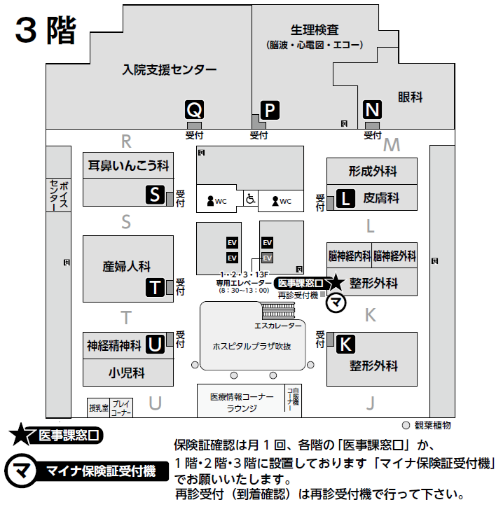 医事課、入院受付、紹介予約受付、薬剤部(お薬コーナー・お薬相談室)、